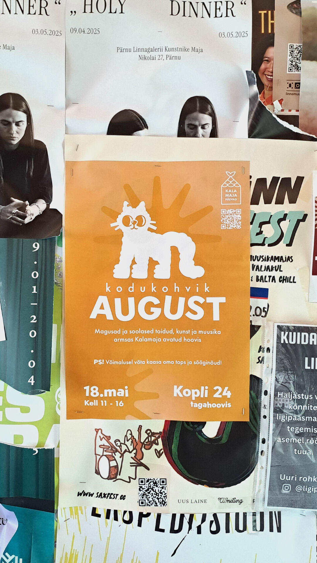 A home café named after the famous sun-kissed cat in Kalamaja!Our menu included savory and sweet food, Shashlik and potato pancakes. There was an art corner where local artists from Kalamaja sold their art, and we offered face painting for children and more daring adults. Friendly mini-chickens were brought out for little entertainment and you could possibly see the man of the house himself - August!